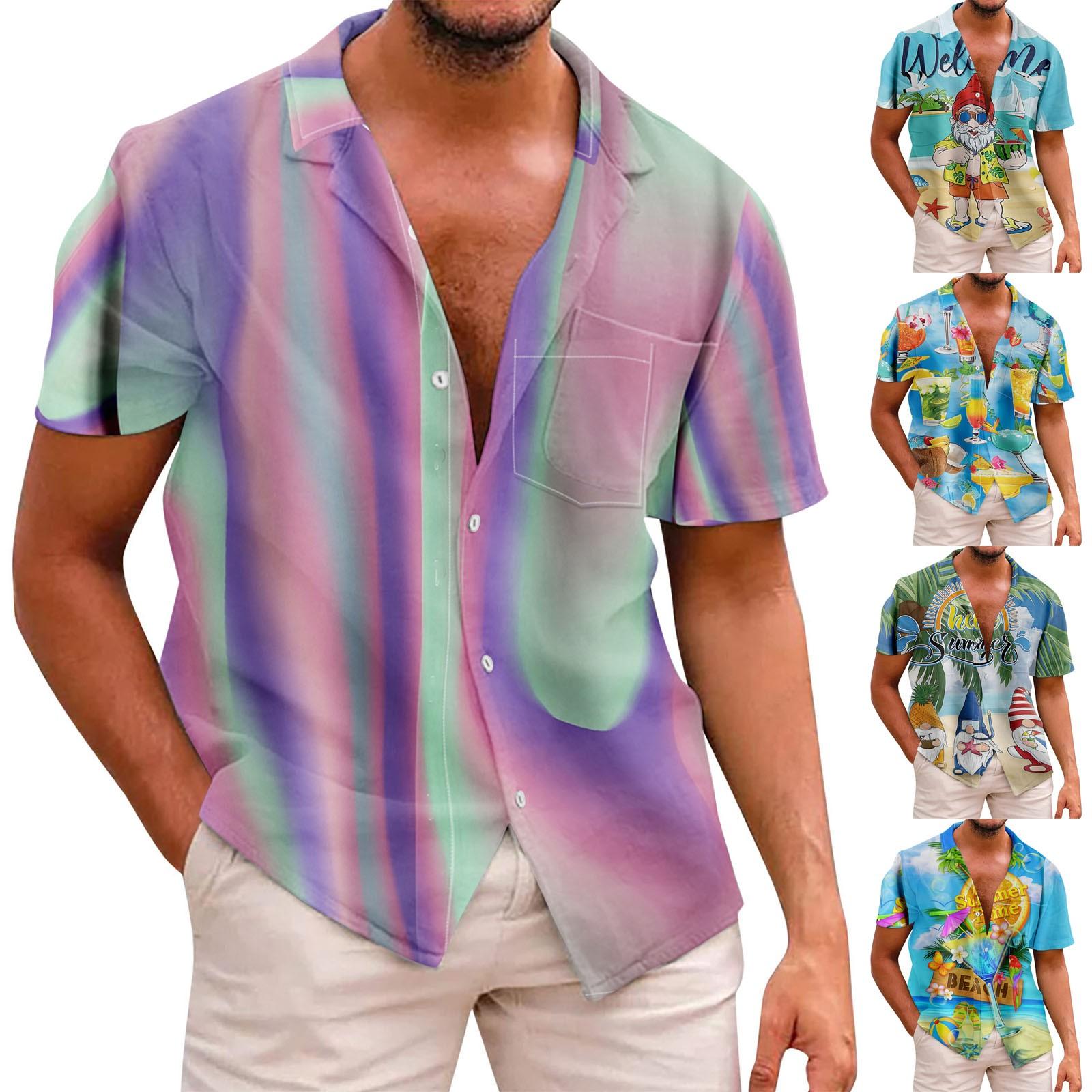 Новая летняя мужская облегающая рубашка с принтом, большая модная повседневная мужская рубашка с коротким рукавом