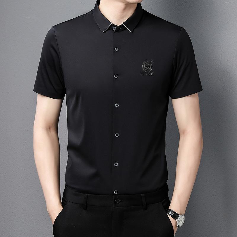 Новая летняя мужская однотонная рубашка с принтом, рубашка с короткими рукавами и лацканами, модная тонкая облегающая рубашка для молодежи и среднего возраста XXXXL