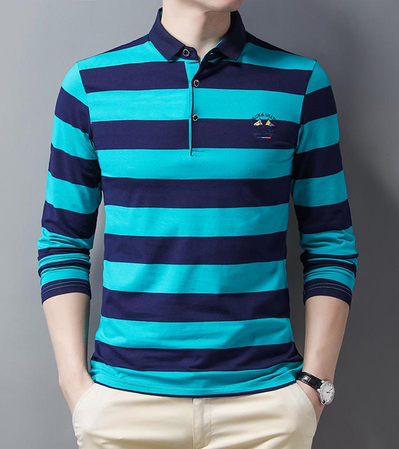 Новая летняя полосатая вышитая мужская уличная одежда рубашка поло хлопок повседневный топ модная уличная мужская одежда с длинным рукавом 4XL зелёный
