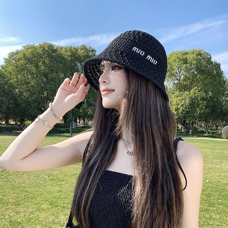 Новая летняя соломенная плетеная защита от солнца модная шляпа-котелок пасторальный стиль ажурная плетеная вышитая буква шляпа-ведро шляпа от солнца