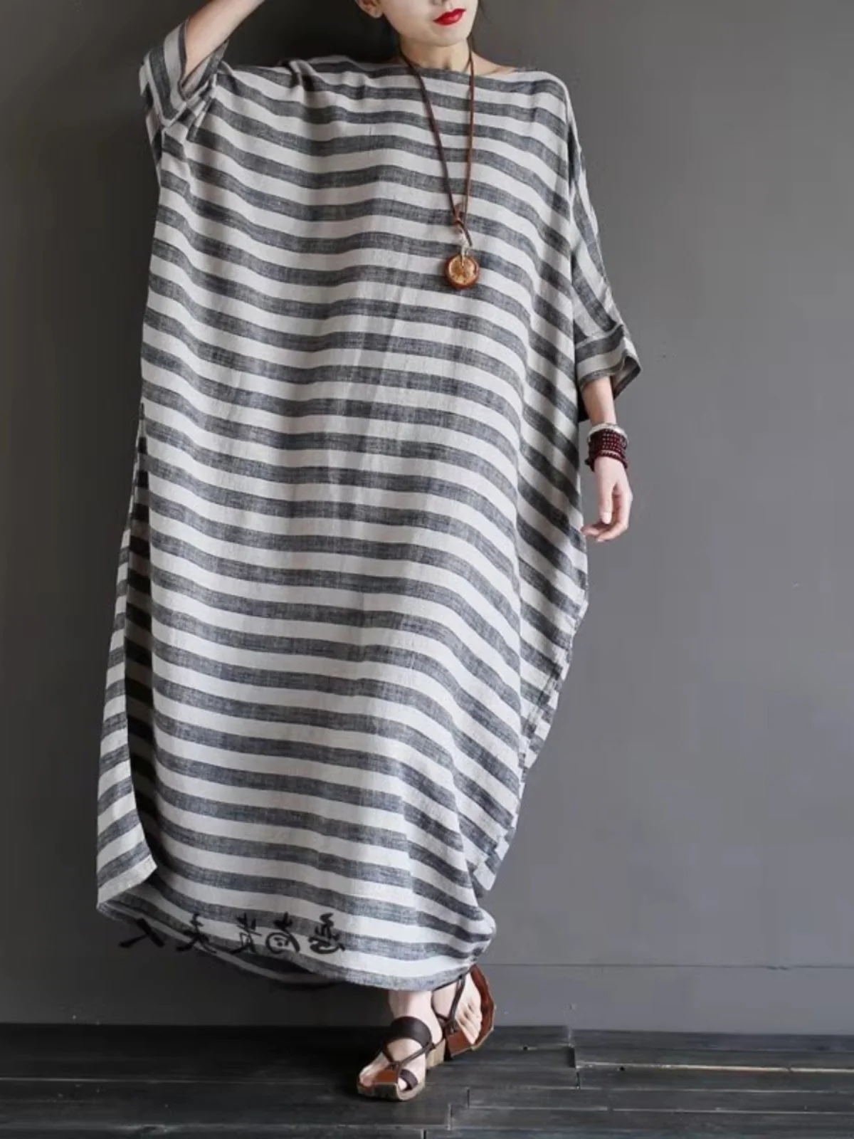 Новая летняя художественная хлопково-льняная полосатая длинная юбка размера «летучая мышь» больших размеров, круглый халат, длинная юбка
