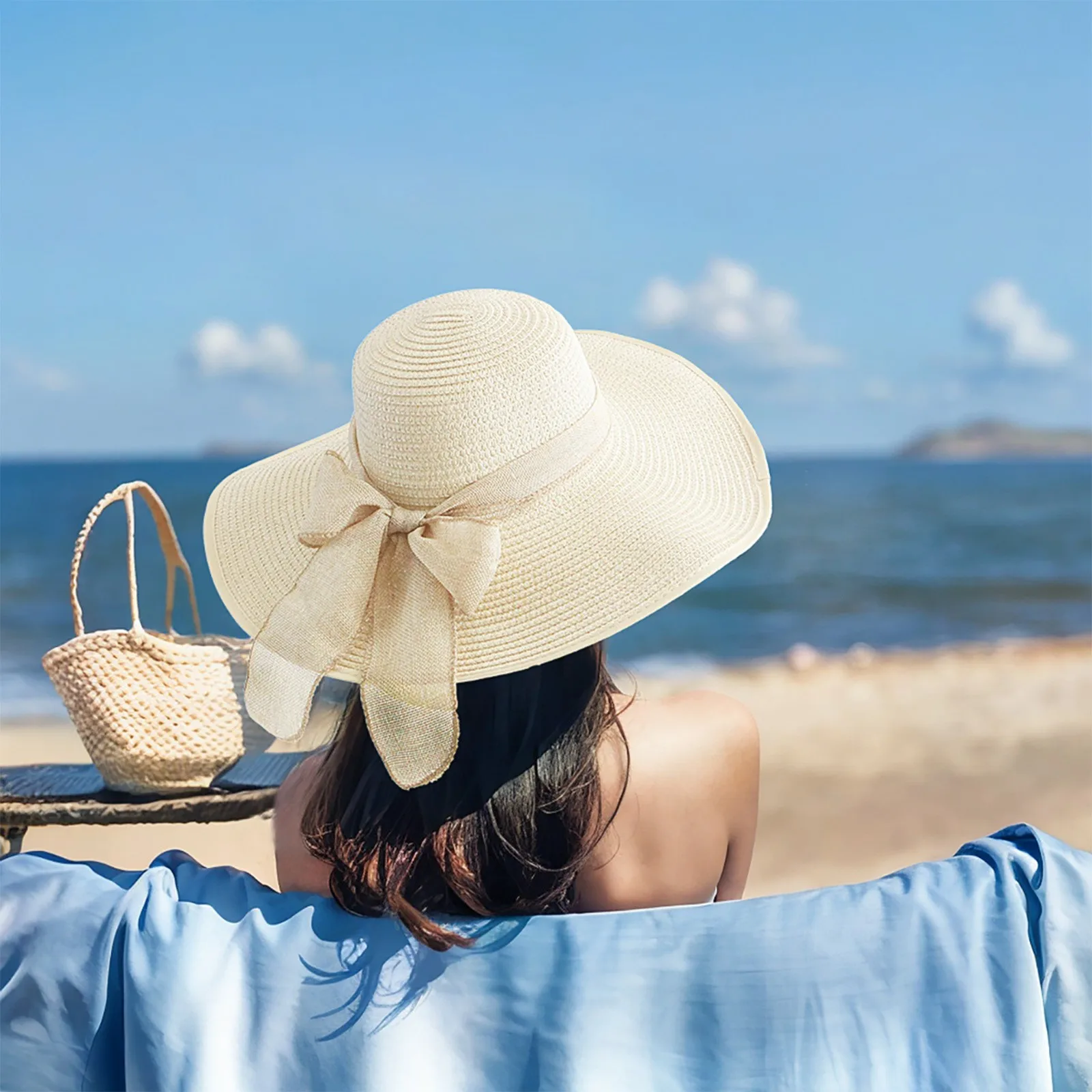 Новая летняя элегантная женская соломенная кепка с бантом и широкими полями, гибкие шляпы для взрослых, уличная солнцезащитная лента, пляжная кепка, сплошной цвет