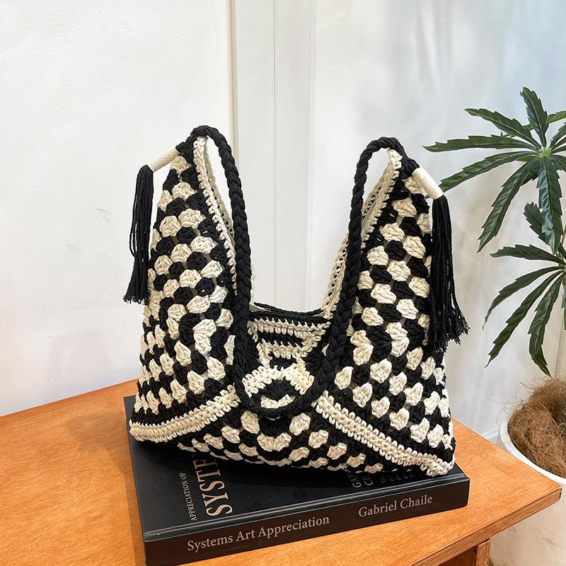 Новая литературная и художественная сумка-веер крючком, модная пляжная сумка для морского отдыха, сумка на плечо, сумка подмышку, женская сумка чёрный