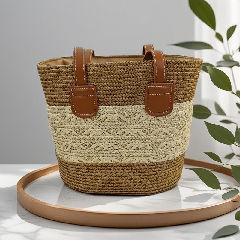 Новая маленькая модная женская сумка через плечо полосатая плетеная сумка трендовая соломенная сумка повседневная пляжная сумка сумка-тоут Medium Bag
