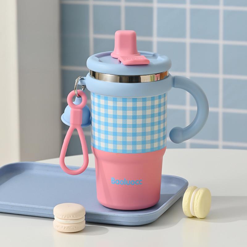 Новая маленькая чашка для льда Bula, модная клетчатая термос-чашка из нержавеющей стали для девочек, высококачественная соломенная чашка, большая емкость, двойная чашка для напитков 600ML