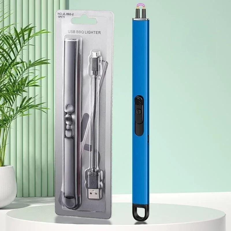 Новая металлическая ветрозащитная беспламенная электрическая импульсная плазменная зажигалка с одной дугой для кухни, уличная зажигалка для барбекю, газовая плита, пистолет для зажигания синий