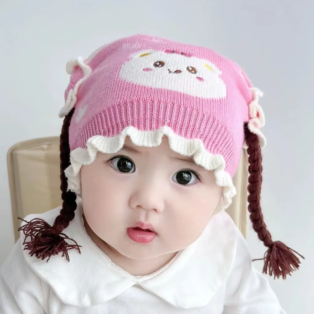 Новая милая вязаная шапка с героями мультфильмов, зимняя теплая утолщенная шапка, ветрозащитная повседневная пуловерная шапка для новорожденных