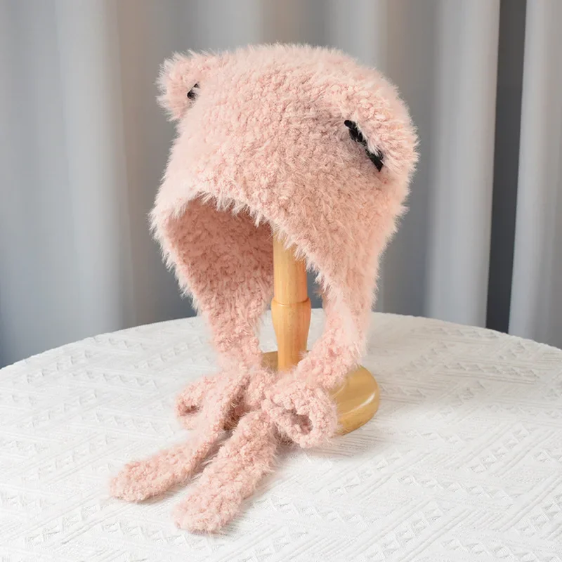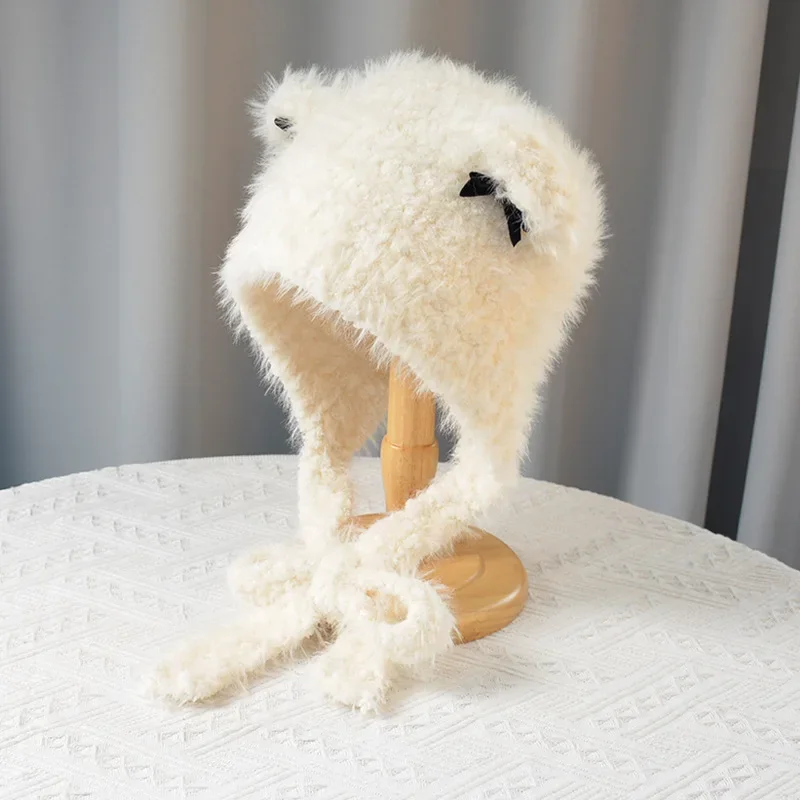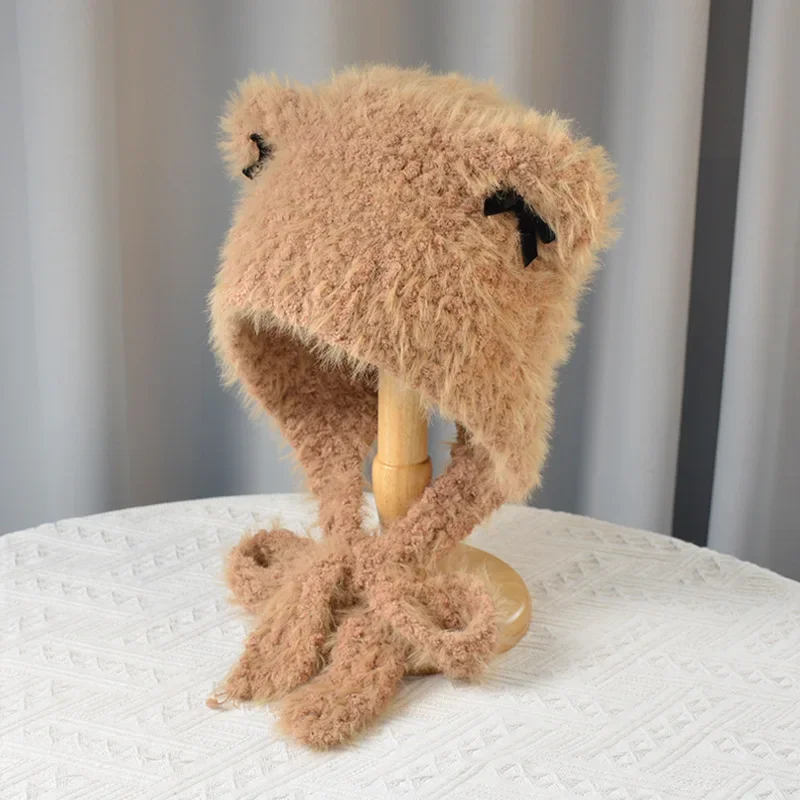Новая милая плюшевая шапка Lei Feng с кошачьими ушками и бантом женская зимняя шапка с ушками Холодная Теплая универсальная вязаная шапка