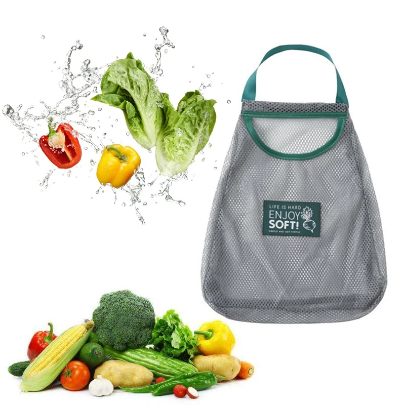 Новая многоразовая сетчатая подвесная сумка для хранения овощей и фруктов, дышащая настенная Сетчатая Сумка для чеснока