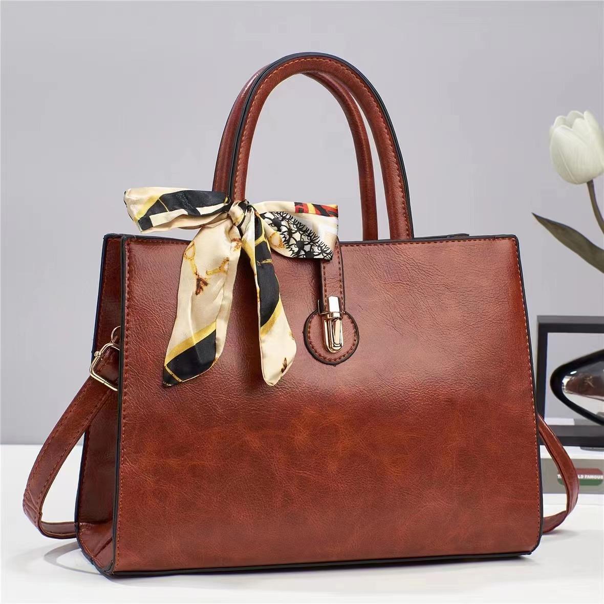 Новая мода ретро кожаный шелковый шарф большой емкости женская сумка через плечо коричневый