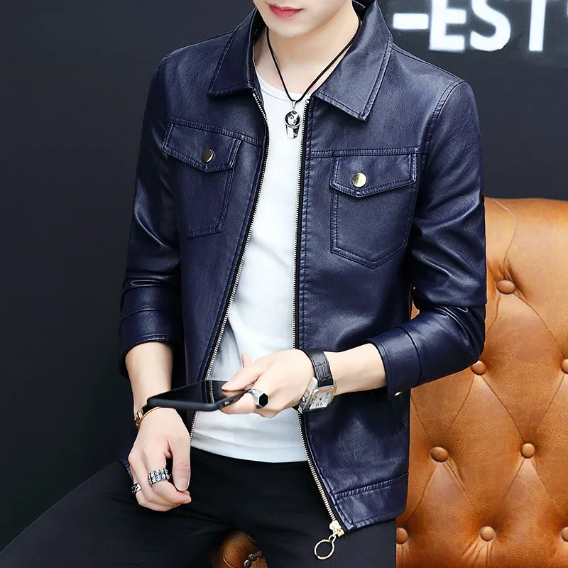 Новая модель 2020, мужская кожаная молодежная приталенная модная мотоциклетная куртка с отложным воротником и четырьмя сумочками, модная кур...