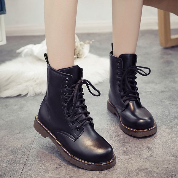 autumn winter platform boots women casual ankle for shoes woman leather lace up shoe ladies snow white botas zapatos de mujer, Black