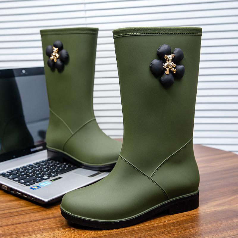 Новая модная высокая дождевая обувь женская водонепроницаемая обувь нескользящая и износостойкая резиновая обувь взрослые длинные резиновые сапоги 40 темно-зеленого
