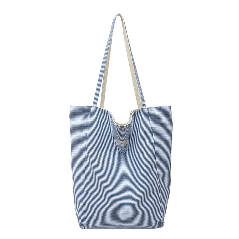 Новая модная двусторонняя холщовая сумка с принтом, модная литературная полосатая сумка через плечо, большая вместимость, студенческая сумка для занятий синий