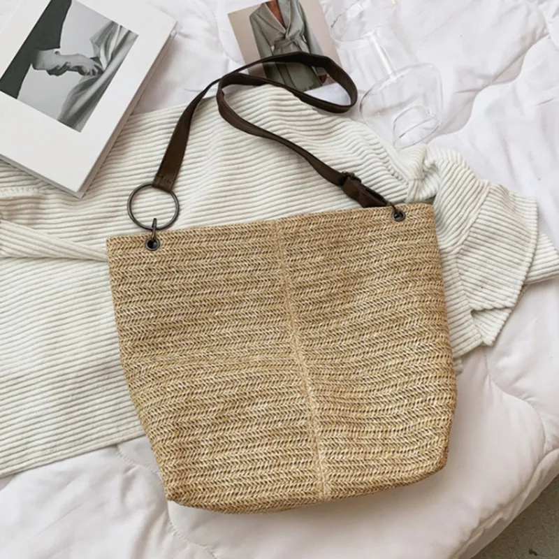 Новая модная женская Соломенная Сумка, летняя пляжная сумка через плечо, Женская дорожная сумка для покупок, вместительная сумка через плеч...
