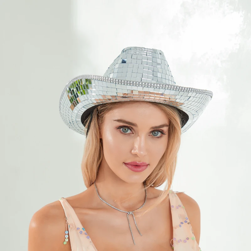 Новая модная женская мужская Ковбойская шляпа с широкими полями, светоотражающая зеркальная шапка Cowgirl с лазерным рисунком, шляпа для карнавала, сцены, фотошоу, горячая Распродажа