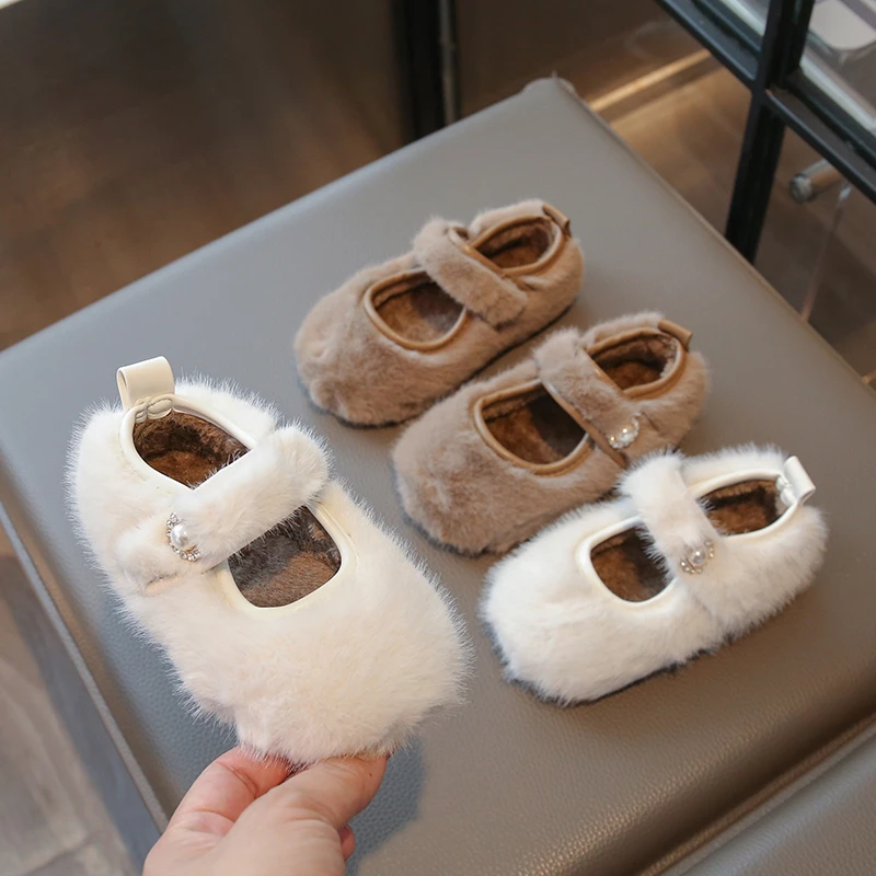 Новая модная зимняя элегантная бархатная обувь на плоской подошве с кристаллами для маленьких девочек, детская легкая школьная милая теплая прогулочная обувь Zapatos