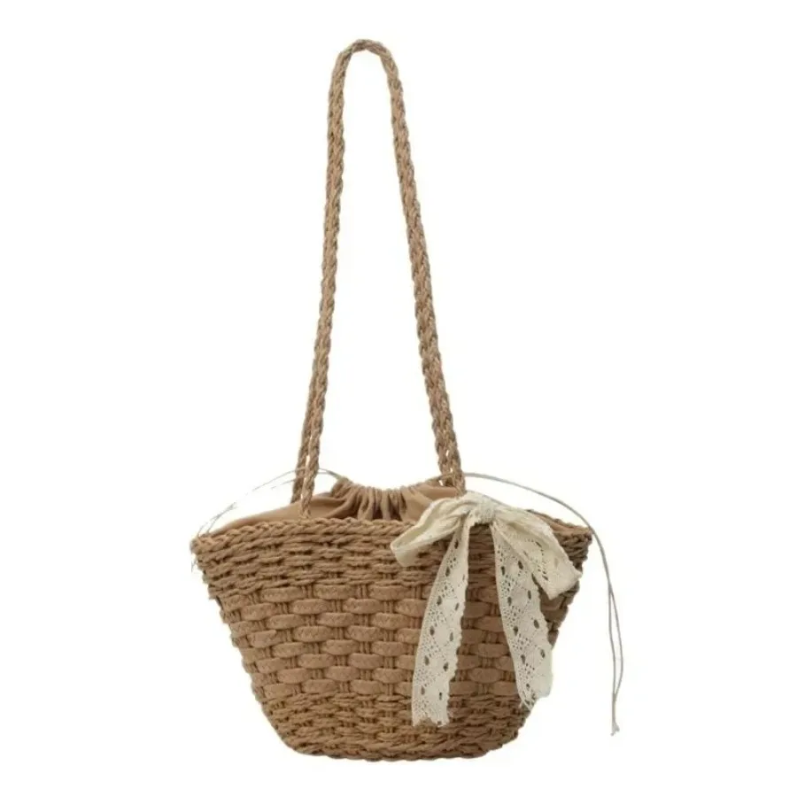 Новая модная летняя сумка для пляжного отдыха, тканая кружевная сумка с бантом, щедрая женская сумка на плечо, большая вместительная сумка в деревенском стиле