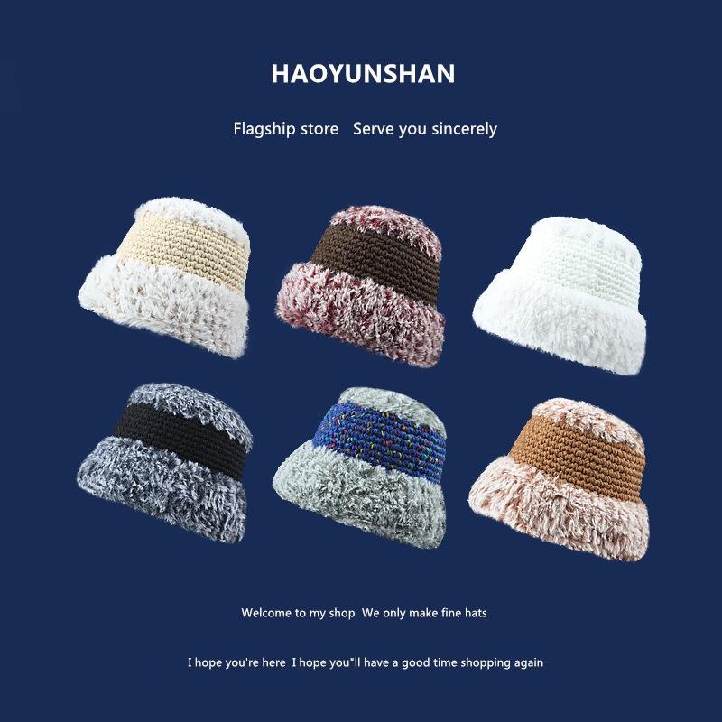 Новая модная осенне-зимняя женская теплая рыбацкая шапка из кроличьего меха, утолщенная женская модная плюшевая шапка, вязаная лоскутная цветная зимняя женская шапка-горшок