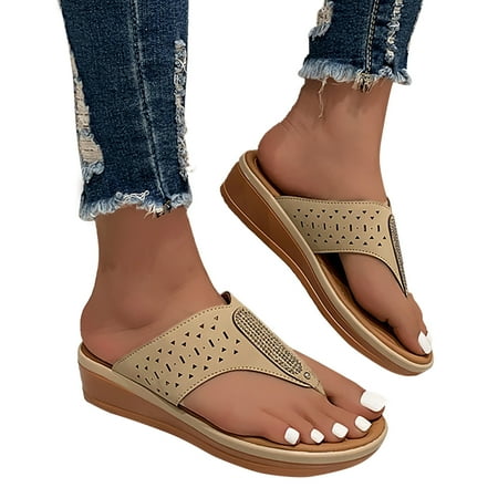 ZIZOCWA Clip Toe Wedge Sandals Women 2023 Summer Thick Platform Beach Sandals Woman Vintage Low Heels Sandalias De Mujer Beige Size8.5