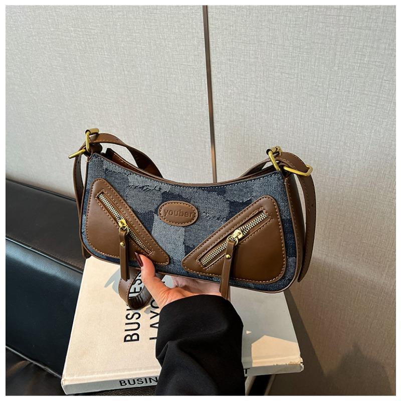 Новая модная сумка-багет женская на плечо для работы, сумка-мессенджер для поездок, универсальная сумка в стиле ретро темно-синий