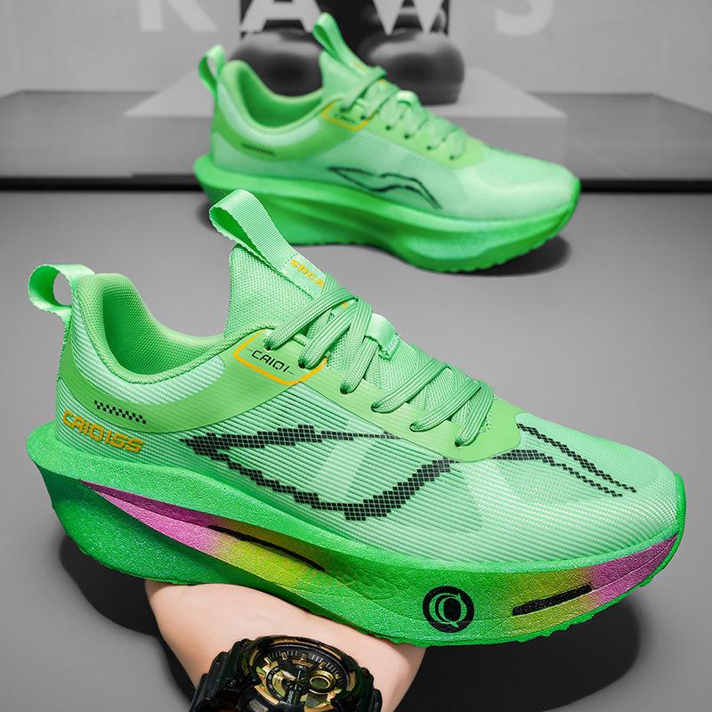 Новая модная уличная дышащая удобная обувь для бега, карбоновая пластина, высокая эластичность, амортизация, студенческая тренировочная спортивная обувь 45 зелёный