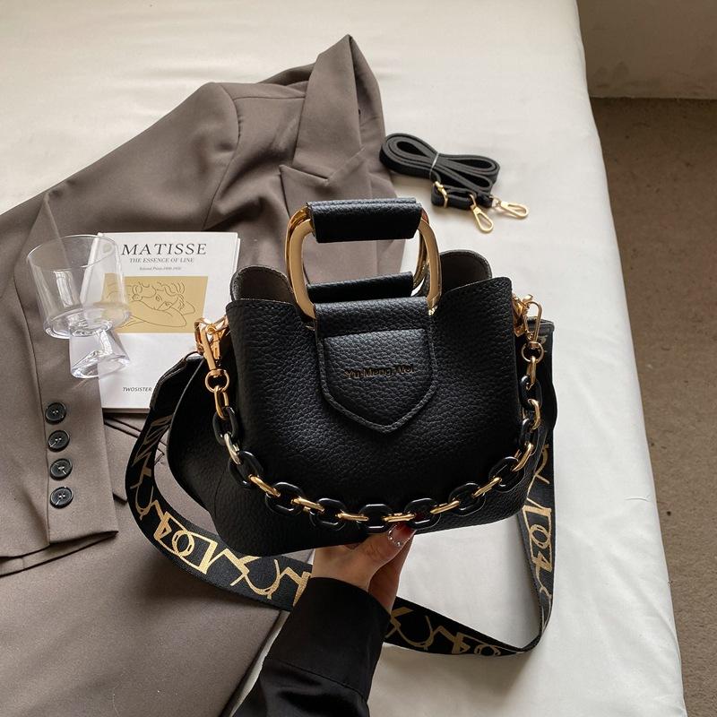 Новая модная и универсальная простая и высококлассная сумка-ведро, нишевая повседневная на плечо, кроссбоди чёрный