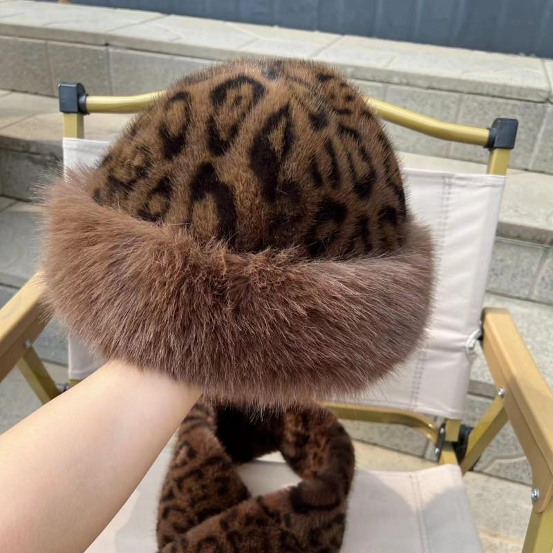 Новая монгольская шапка с леопардовым принтом, взрослая шапка, женская теплая модная зимняя шапка, шляпа-ведро рыбака, плюшевая шапка S(54-56cm)