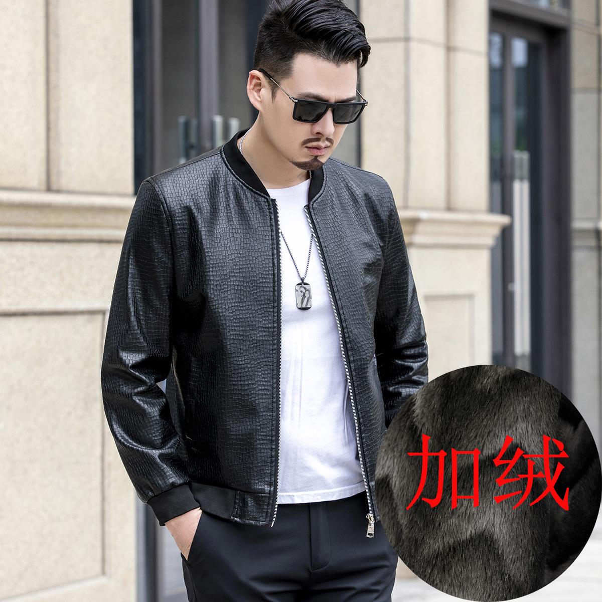 Новая мужская кожаная куртка с принтом аллигатора, осень-зима, облегающая повседневная бейсбольная куртка с воротником Ice Crack, молодежная кожаная куртка для мужчин 4XL
