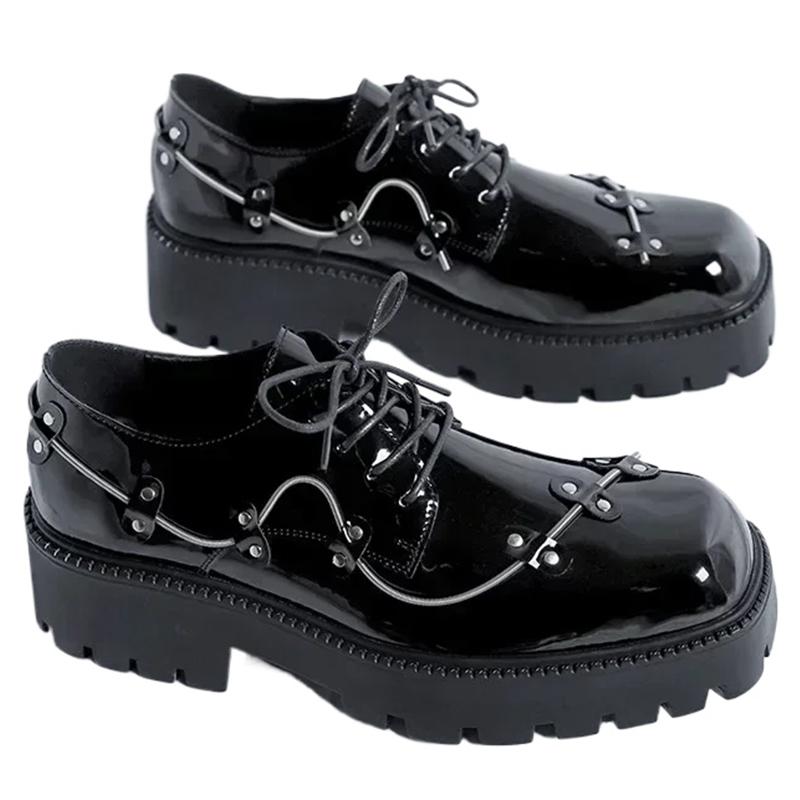 Новая мужская повседневная обувь на платформе Оксфорды Мужская ретро лакированная кожа Повседневная обувь Обувь для вечеринок Кожаная обувь 44 чёрный
