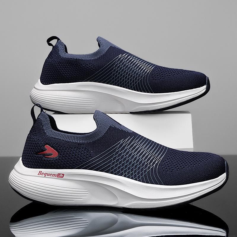 Новая мужская почвенная летающая тканая эластичная поверхность офсетная печать ультралегкая мягкая подошва повседневная обувь для катания на одной ноге уличная дышащая обувь для ходьбы 45 темно-синий