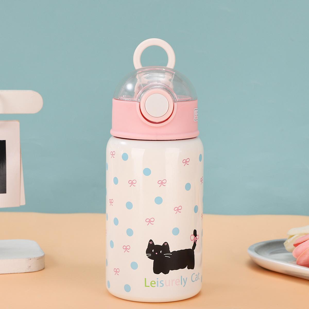 Новая мультяшная чашка с рисунком котенка из нержавеющей стали с соломенной крышкой, переносная чашка для улицы 450ml