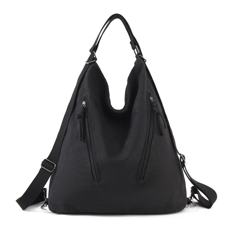 Новая наплечная сумка большой вместимости, повседневная, универсальная, двойного назначения, сумка-тоут для поездок на работу, ретро, простая, с двумя плечевыми ремнями, школьный рюкзак, холщовая сумка чёрный