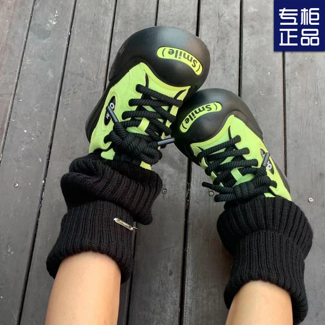 Новая нишевая оригинальная милая большеголовая уродливо-милая парусиновая обувь женская 2025 осень и зима универсальная с открытой улыбкой повседневная маленькая белая обувь 40 флуоресцентный зеленый