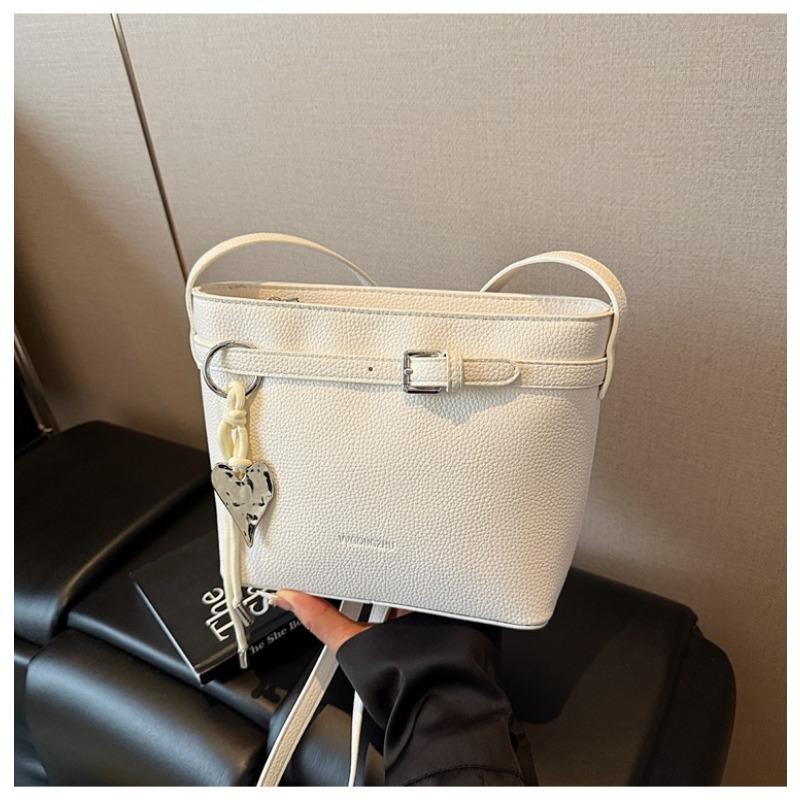 Новая нишевая простая сумка-ведро с узором личи, для отдыха, для поездок на работу, персонализированная пряжка на ремне, сумка-мессенджер, женская сумка белый
