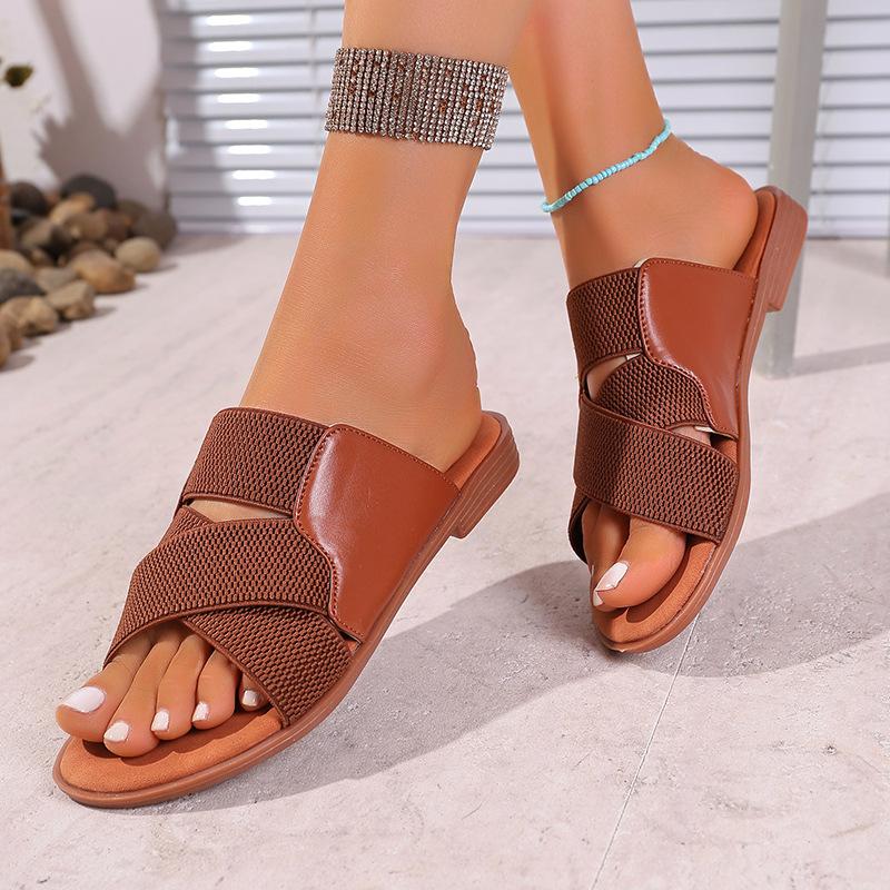 Новая обувь большого размера для женщин, ремешок крест-накрест, однотонная, модные крутые шлепанцы на плоской подошве, тренд, домашние и уличные шлепанцы с одним ремешком 43 коричневый