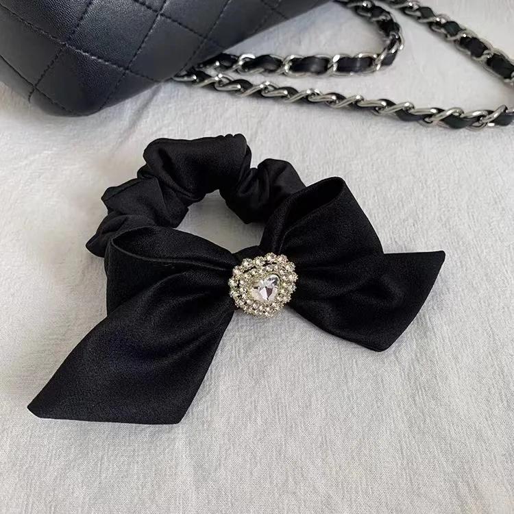 Новая однотонная атласная резинка для волос с бантом, женская, корейский стиль любви, кольца для головы, завязки, модный темперамент, элегантные аксессуары для волос для девочек