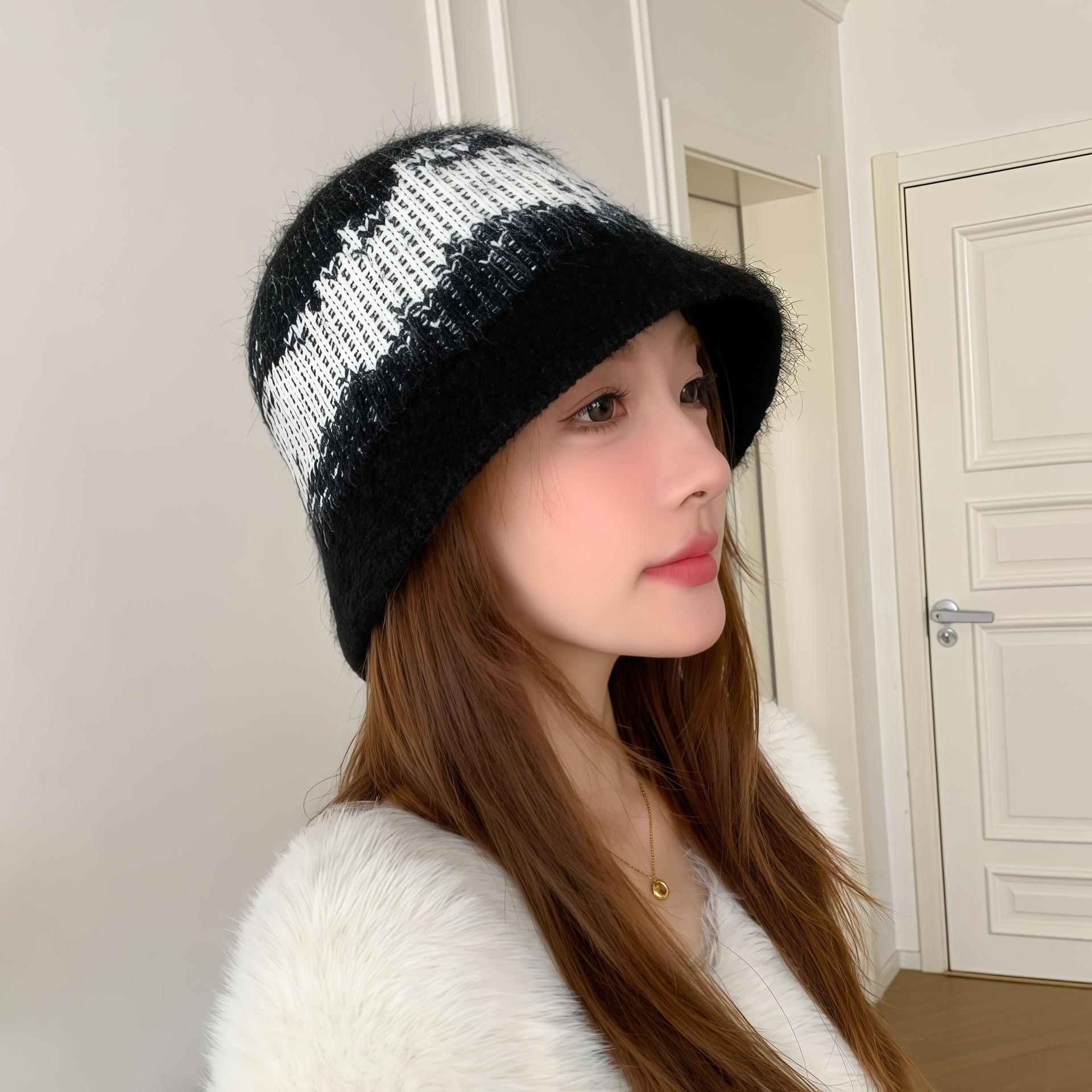 Новая осенне-зимняя вязаная шапка для женщин в корейском стиле, повседневная плюшевая шляпа-ведро, теплая уличная шерстяная шляпа-колокол, универсальная плюшевая One Size