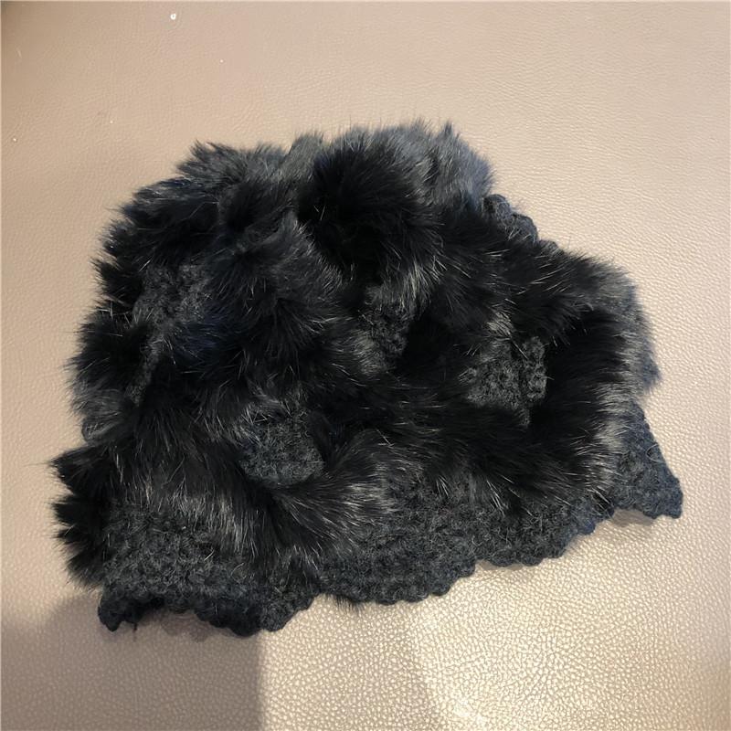 Новая осенне-зимняя вязаная шапка ручной работы с кроликом, плюшевая, для женщин, корейский стиль, универсальная шапка-мешок на голову, теплая шапка-дыня из кожи, трендовая M(56-58cm)