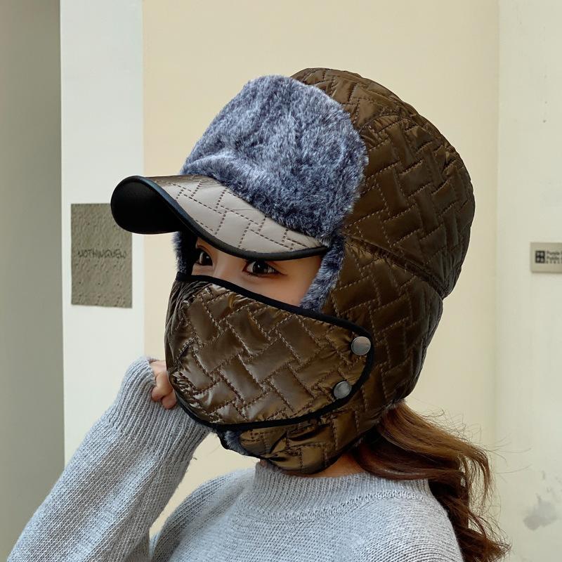 Новая осенне-зимняя женская шапка с козырьком, ветрозащитная и теплая шапка, уличная шапка с защитой ушей, утепленная теплая велосипедная шапка темно-коричневого