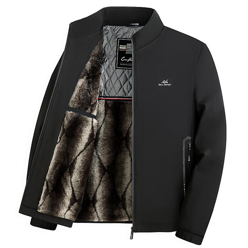 Новая осенне-зимняя мужская куртка с воротником-стойкой, для людей среднего и пожилого возраста, утолщенная теплая бархатная зимняя куртка для папы XL