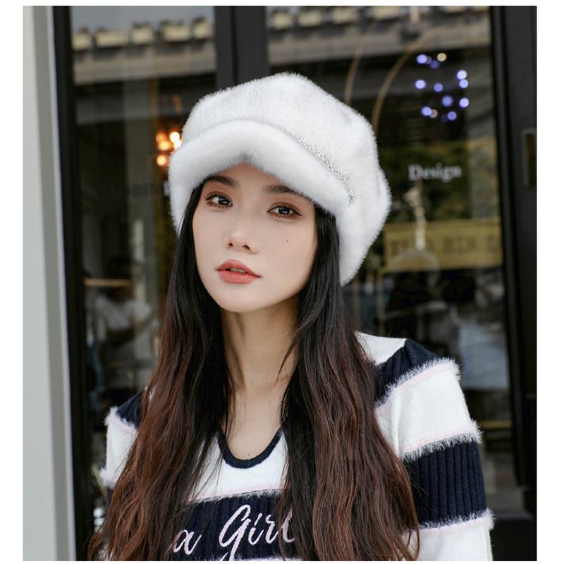Новая осенне-зимняя шляпа с козырьком для женщин, восьмиугольная шляпа из экологичного меха, шляпа-торпеда, теплая защита ушей и носок A белый