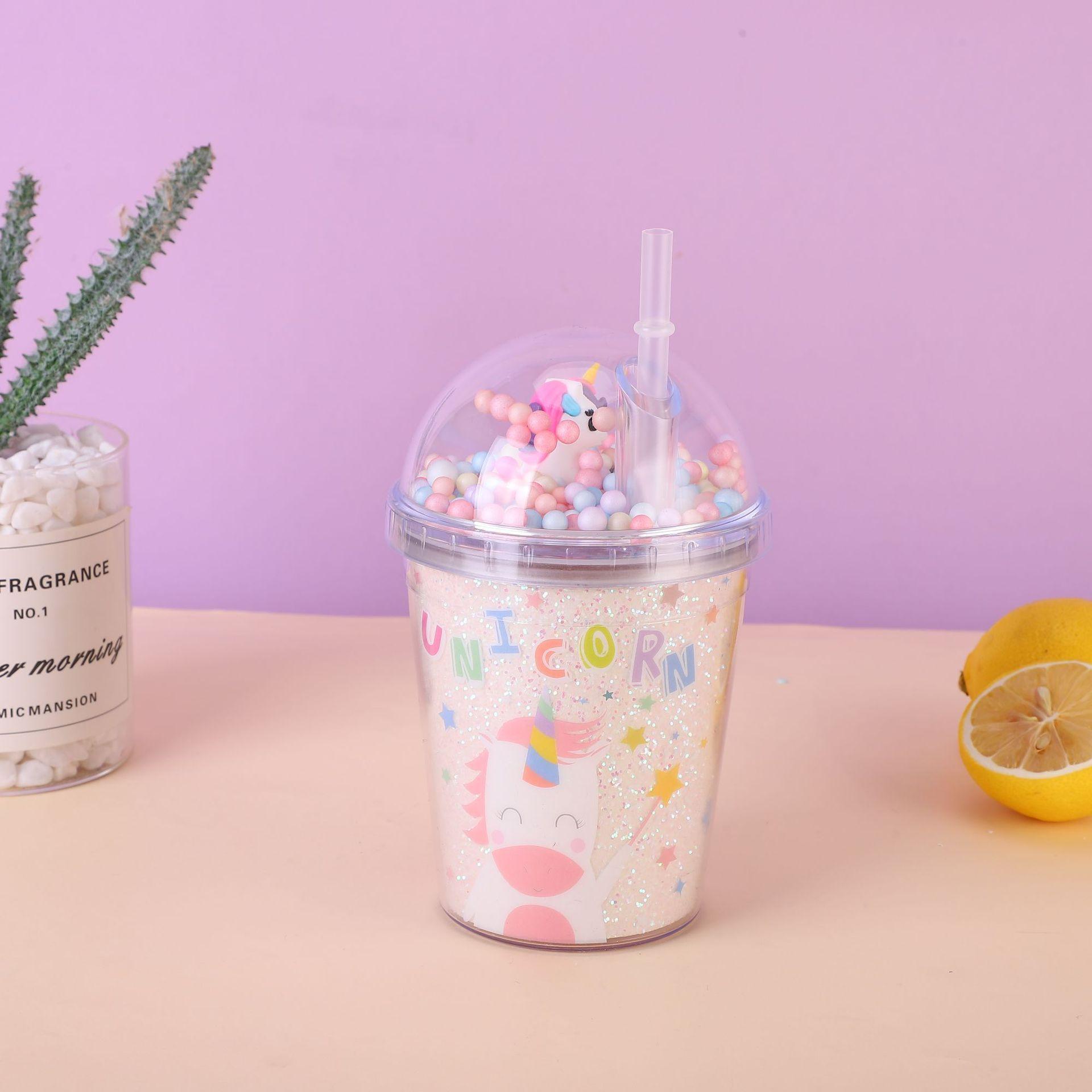 Новая пластиковая чашка для воды с единорогом, летняя детская соломенная чашка для пары, милая креативная портативная портативная чашка, кукольная чашка 450ml
