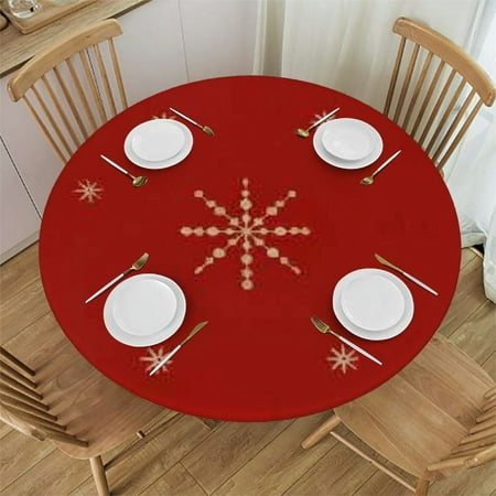 Ullo0ord Christmas Round Tablecloth Fitted Table Cover Elastic Tablecloths Waterproof Outdoor Indoor Stretch Cloth Tablecover for Dinner Party Shower Red Golden Holiday 42-46