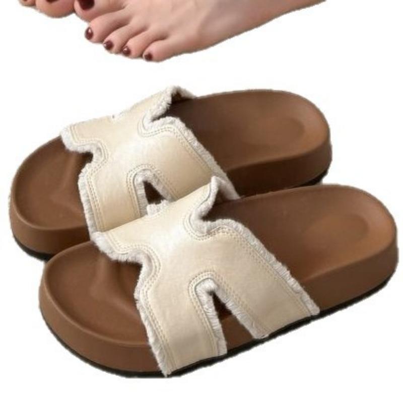 Новая плоская повседневная и универсальная женская обувь на толстой подошве, пляжные сандалии и шлепанцы на одно плечо 40 бежевый