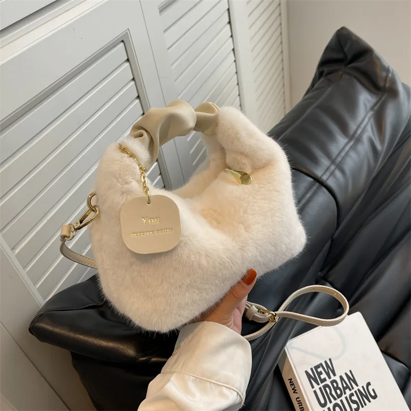 Новая плюшевая тканевая женская сумка через плечо, маленькая модная зимняя женская сумка из овечьей шерсти с пушистым мехом, дизайнерские с...
