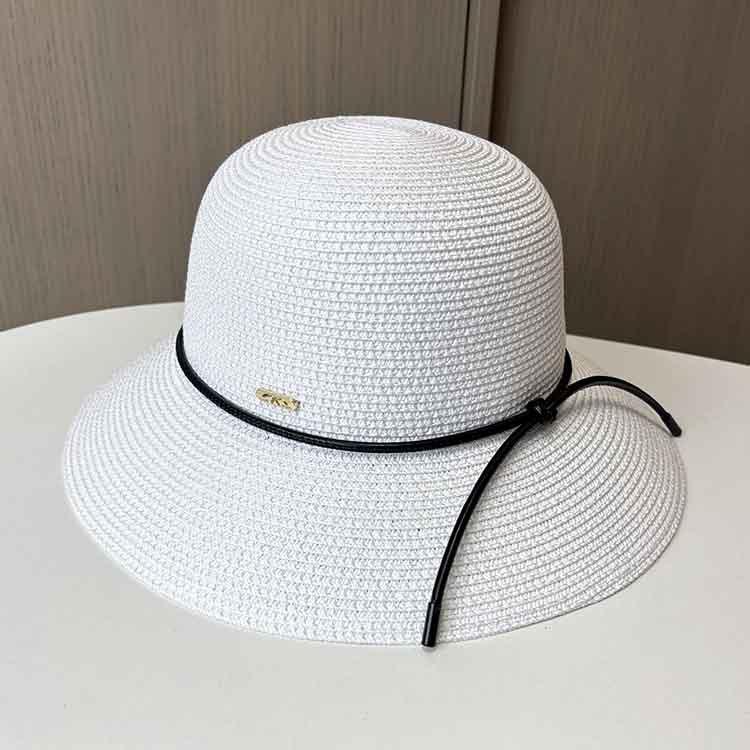 Новая повседневная соломенная шляпа с кожаным ремешком, пляжная шляпа, летняя женская пляжная шляпа с защитой от ультрафиолета One Size белый