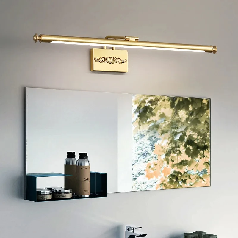 Новая полностью медная зеркальная фронтальная настенная лампа золотого цвета для ванной комнаты противотуманная зеркальная шкафная простая заполняющая искусственная Настенная Декорация