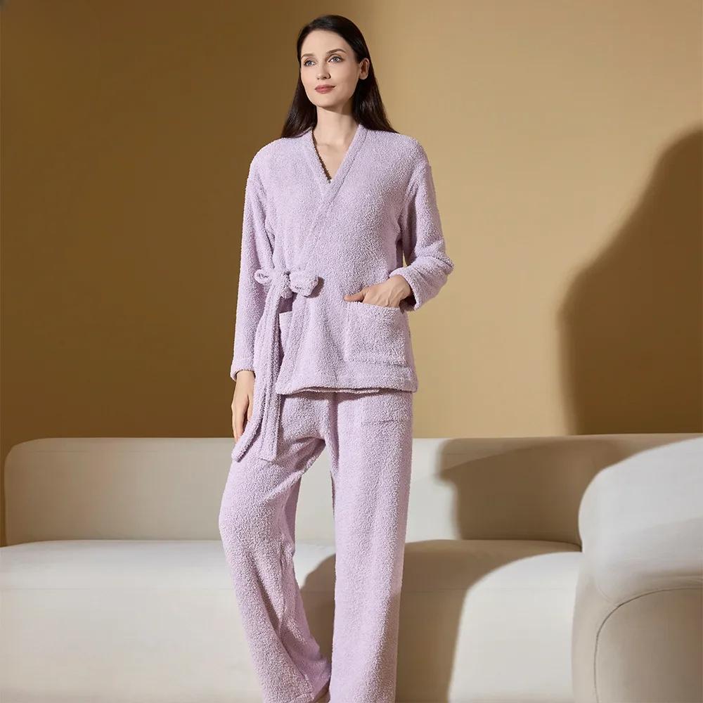 Новая полубархатная пижама женская зимняя утолщенная флисовая подкладка коралловый бархат домашняя одежда плюшевый костюм XL