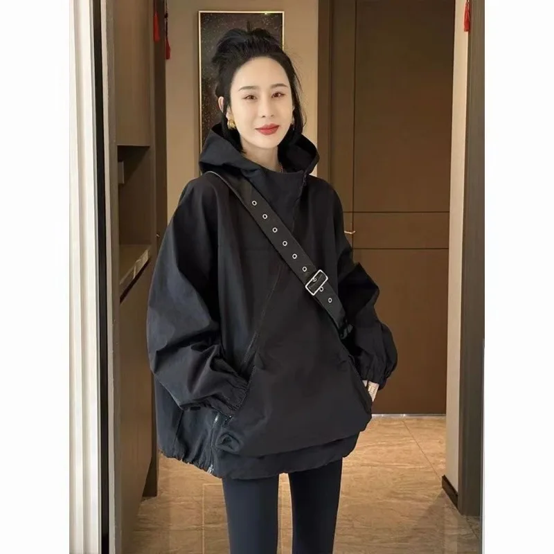 Новая популярная черная ветровка, женская весенне-осенняя одежда, модная стильная повседневная модная куртка на косой молнии в корейском стиле